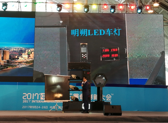 主持人在讲解明朔科技石墨烯LED车灯的独特性能