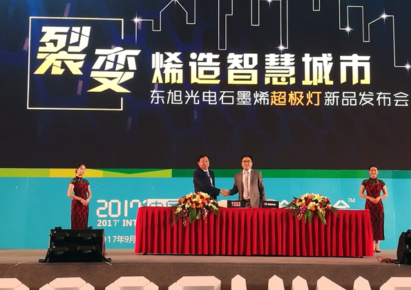 丰富的产品线和优异的性能,使东旭光电“超极灯”系列新品在发布会备受追捧。大会现场,东旭光电与牡丹江市人民政府、中兴克拉、浙大山东研究院签署战略合作协议,在石墨烯应用领域的项目投资、产业合作、技术研发等方面加强合作。